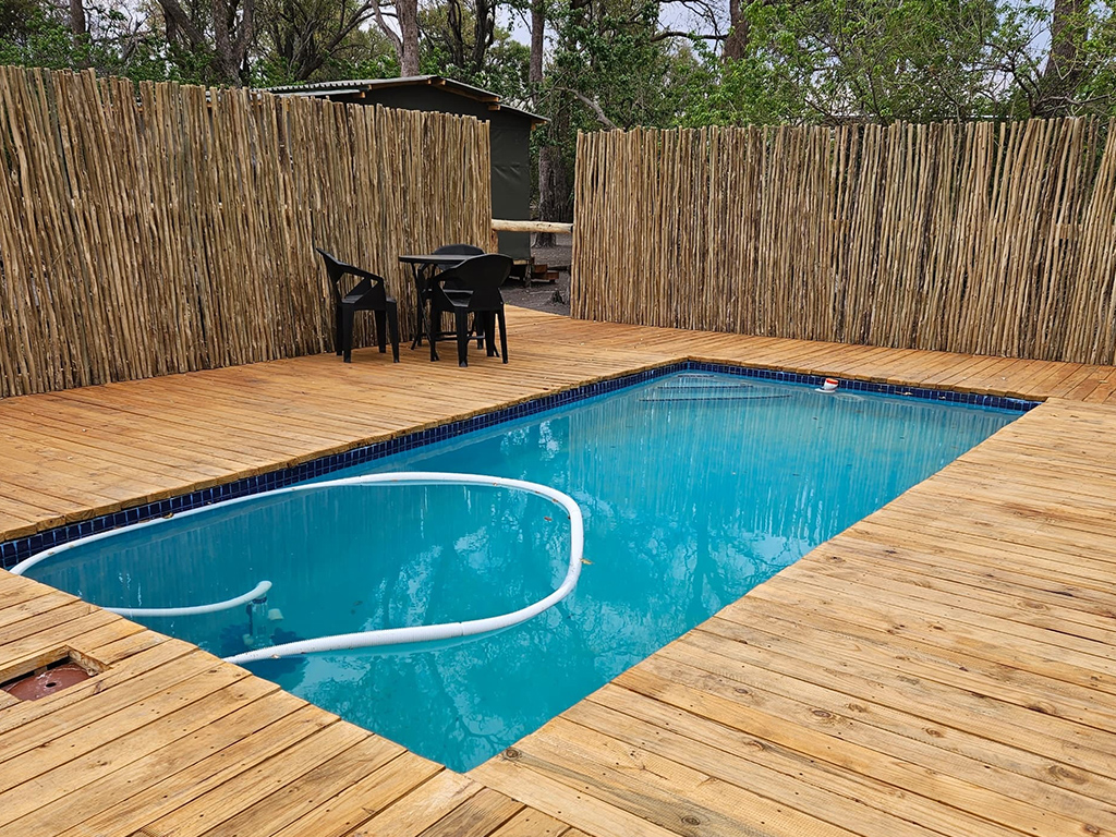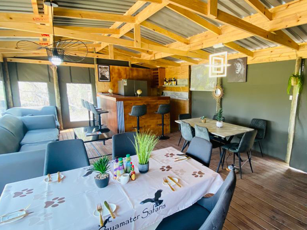 The camp includes a bar and restaurant with a lounge and dining area. Meals (breakfast, lunch, and dinner) must be pre-ordered. Guests can also enjoy the boma fireplace in the evenings, ideal for dining under the stars, stargazing, or storytelling around the fire. A sundowner deck overlooks the Mbudi River, offering a serene spot to relax and capture beautiful sunsets. A secluded swimming pool completes the camp’s facilities.